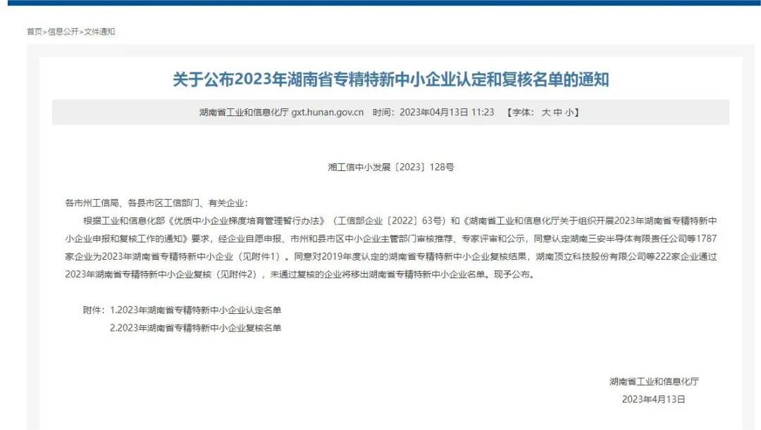 湖南日报·华声在线4月18日讯(通讯员 杨向瑜 彭鹏)近日,湖南省工业和信息化厅公示认定了2023年第一批湖南省专精特新中小企业入选名单,湖南建投集团交通国合公司易邦新材顺利通过评审认定并完成公示。此认定是湖南交通国际经济工程合作有限公司旗下首批获此殊荣的企业。