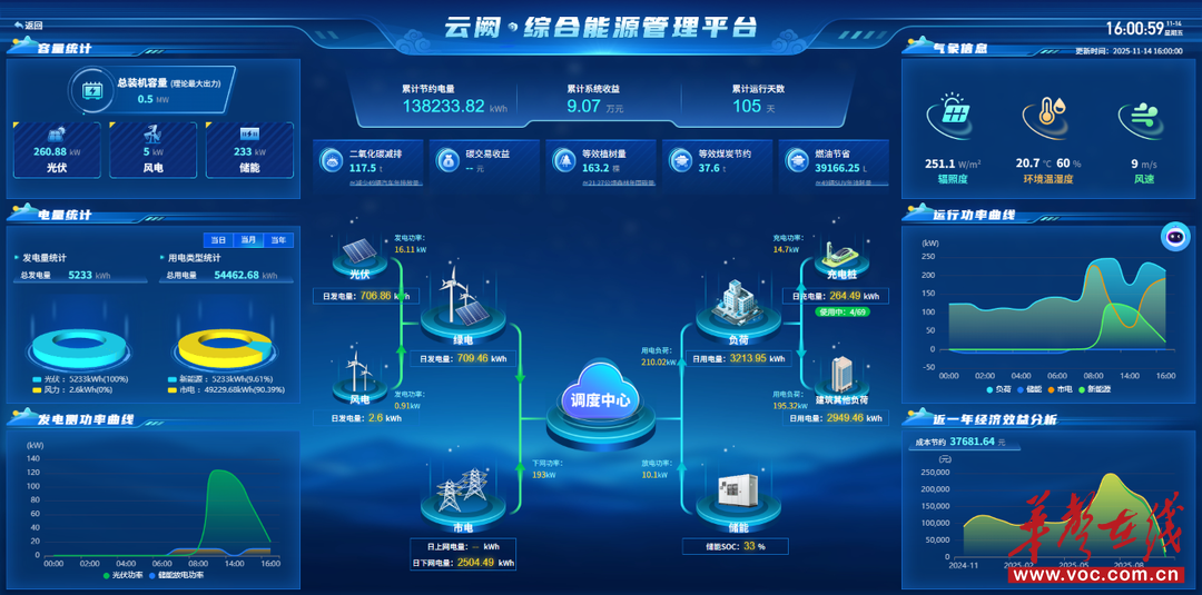 关键的是,建投交通科研院为此打造了智慧能源管理平台,对园区能耗进行统筹管理与优化,搭建了一套完整的微电网系统。“平台像一名‘虚拟电厂调度员’,根据实时电价、发电与负荷情况,智能决策储电、放电与充电策略。”贺晋表示,初步估算,这套系统能为大楼降低10%-15%的综合用电成本,实现经济效益与环境效益的双赢。