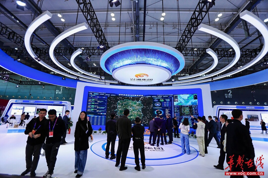 在众多展区中,兴湘集团展区尤为引人注目。由省低空集团携手兴湘集团系统内九家低空经济产业相关单位共同打造的展区面积达800平方米,布局巧妙,分为形象展示、系统展示、低空场景、互动体验、企业成果及合作洽谈等多个区域,成为全场焦点。
