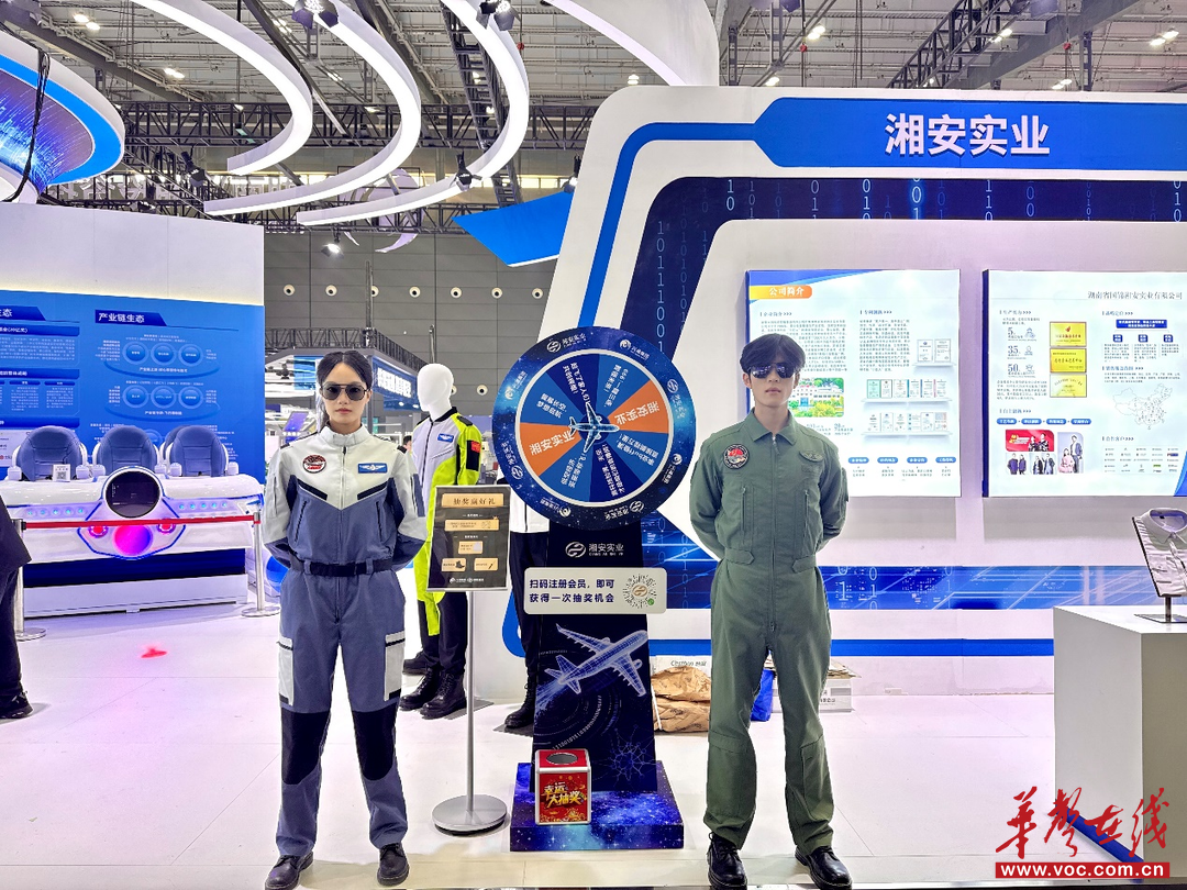 步入湘安实业的展厅,一件件设计精巧、功能完备的航空服吸引了众多参观者的目光。“这款服装手感非常舒适,既美观又时尚。”一位参观者在体验后赞叹不已。