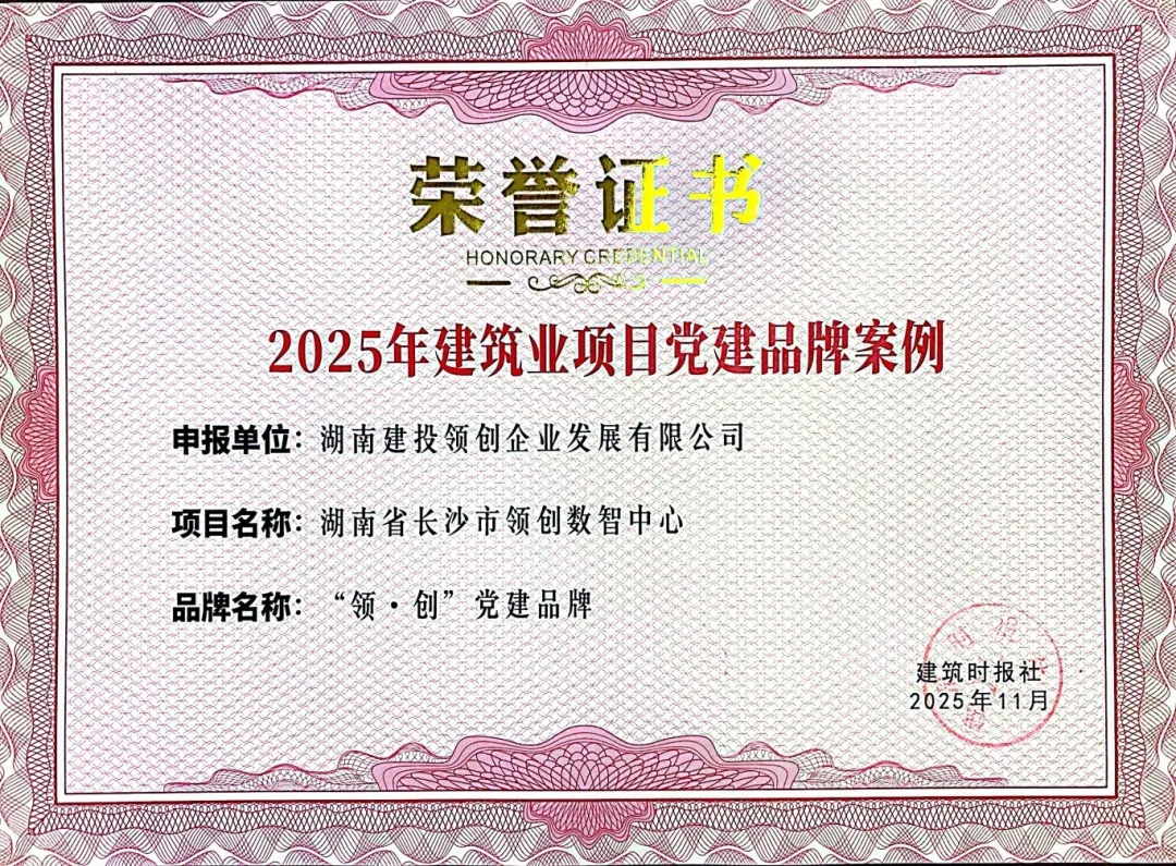 湖南建投领创公司“领·创”党建品牌荣获“2025年建筑业项目党建品牌案例”。