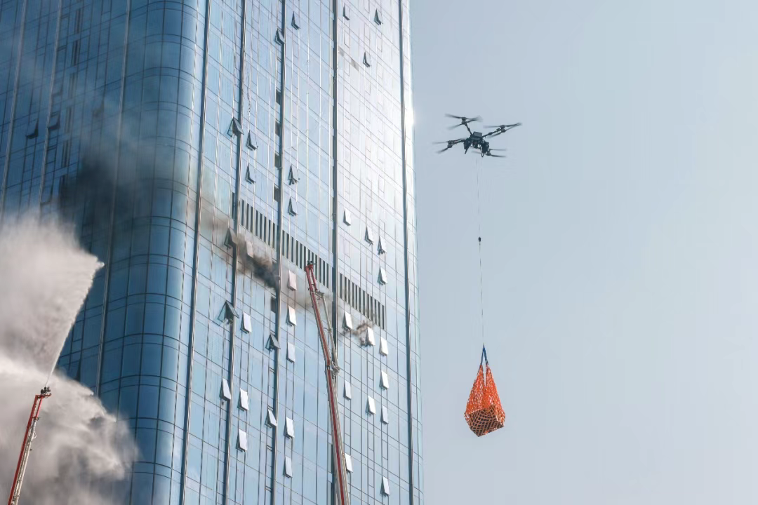 内攻环节,消防员身着外骨骼装备轻松登高,轮履式机器人适配复杂地形保障装备供给,载重无人机吊运物资破解高层输送难题;外部控火中,不同举升高度的高喷车梯次布阵,系留灭火无人机、破拆无人机协同作业,构建立体化控火体系。