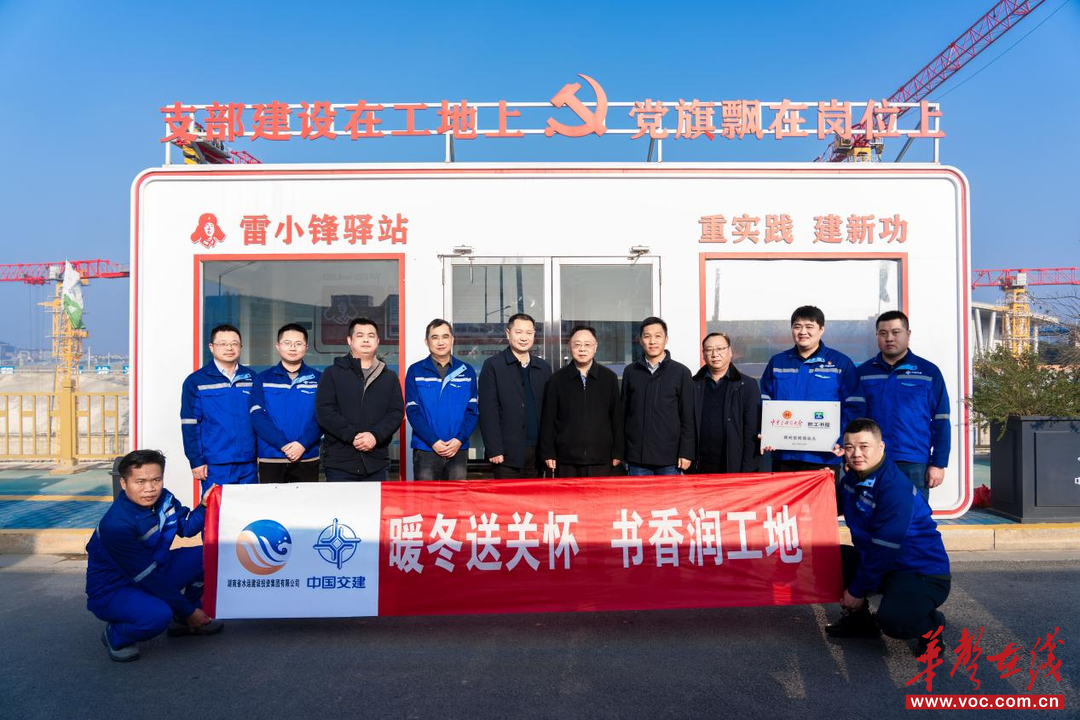 华声在线1月7日讯(通讯员 黄功莉)1月6日,湘江长沙综合枢纽三线船闸项目(以下简称“湘江长沙三线船闸项目”)传来喜讯,该项目“雷小锋”驿站书屋荣获中华全国总工会职工书屋“便利型阅读站点”称号。湖南省交通运输工会主任李曙光为“雷小锋”驿站书屋授牌,并慰问湘江长沙三线船闸项目一线建设者,勉励大家以书香为伴、以技能为基,在重点工程建设中践行工匠精神,为湖南水运事业高质量发展贡献力量。
