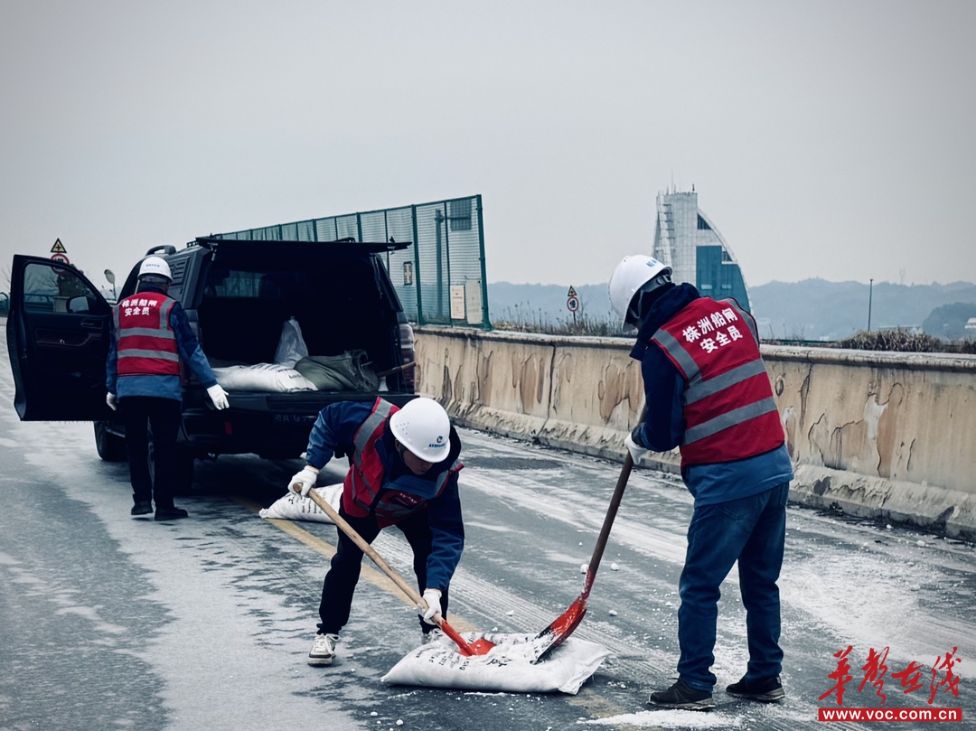 株洲船闸工作人员撒融雪剂除冰。以上均由通讯员供图